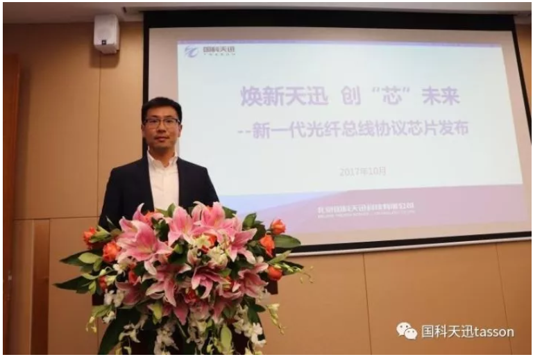 国科乐鱼平台-乐鱼(中国)一站式服务平台市场部经理徐俊亭为大家讲解并发布国内高可靠光纤通信领域的首款总线协议芯片产品。